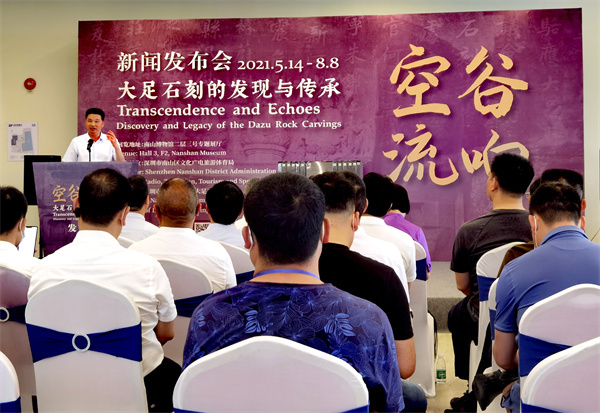 5月14上午,由深圳市南山區文化廣電旅遊體育局主辦,深圳市南山博物館、大足石刻博物館聯合承辦的“空穀流響——大足石刻的發現與傳承”展覽在南山博物館隆重開幕,來自各界領導和嘉賓逾百人出席開幕式。這也是時隔35年後第二次到深圳展出,深圳市民在家門口就可以享受文化的“饕餮”盛宴。
