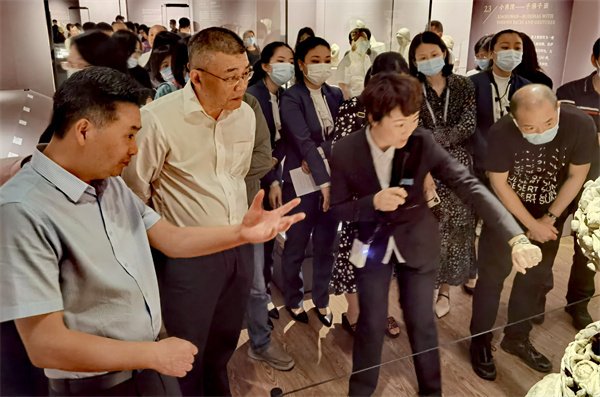中共重慶市大足區委副書記羅曉春表示:“在這樣一個最好的時代、最美的年華中,我們大足石刻走進南山博物館,這就是傳統與現代碰撞,歷史與未來交融。我們把這份文化的盛宴帶到改革開放的前沿,帶到深圳人民的面前,希望用這樣的方式來增強我們的文化自信、傳承歷史瑰寶。”重慶市人民政府駐廣東(華南)辦事處主任陳小南表示:“大足石刻是中華的瑰寶,是中華文物的石窟精華。1999年,大足石刻成為繼敦煌之後,第二個列入《世界遺產名錄》的中國石窟,北有敦煌,南有大足,世界遺產舉世矚目。我們中華的文化薪火相傳,我們的工匠精神萬代傳頌。