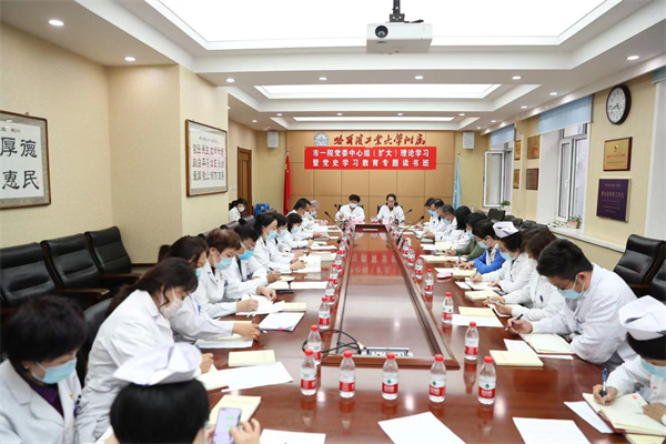 5月13日晚,哈爾濱市第一醫院行政樓會議室燈光明亮。按照哈爾濱市衛健委黨委通知要求,哈爾濱市一院黨委中心組(擴大)理論學習暨黨史學習教育專題讀書班開班。醫院黨政領導班子成員、基層黨支部書記、重點崗位職能科室負責人等黨員幹部利用下班後的業餘時間,參加這次深化政治理論暨黨史學習教育的集中專題學習。理論學習中心組(擴大)成員聚焦學史明理、學史增信、學史崇德、學史力行,深刻體悟黨的創新理論,進一步統一了思想認識,堅定了信仰信念,樹牢了初心使命,強化了責任擔當。黨委書記錢朝霞主持學習會。