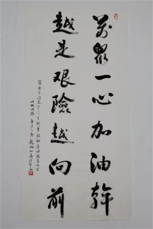 感恩一路同行,惟願“山河錦繡”,離任前,他寫給山河的一幅字,也是永恆的祝願。此字無聲勝有聲,充滿力量,繼續奮進!(記者 吳敏 通訊員 汪娜 潘禎祥)