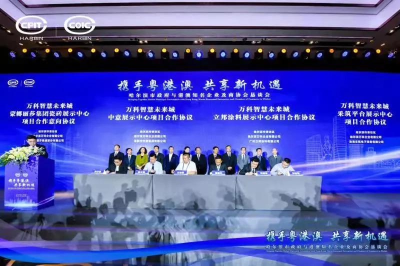 活動期間,司炳春帶隊先後參加了哈爾濱市政府與廣州企業家懇談會、港澳知名企業及國內外商協會懇談會、廣州外資企業及僑商懇談會。香坊區政府、萬科集團分別與采築電子商務有限公司、立邦塗料有限公司、中意集團有限公司、蒙娜麗莎集團股份有限公司簽署了三方協議,涉及智能家居、節能材料、智慧社區等多個領域。目前,香坊區聯合萬科采築平台共同引進建築裝飾等材料供應商落地東北總部項目,從研發到生產加工開展鏈式招商,吸引上下游配套企業集聚,年流量銷售額可達百億。