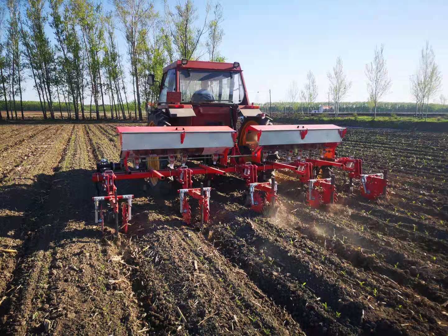 5月17日,北大荒農業股份慶豐分公司第七管理區第一、第二作業站的玉米田裏,一台機車正在進行中耕深松作業。