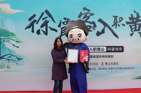 入職儀式上,黃山旅遊為“徐霞客”頒發黃山旅遊首席旅行體驗官入職聘書,“徐霞客”發表入職感言並為遊客們帶來黃山自然奇景經典遊、潮玩黃山人文遊和美食美宿深度遊三條線路,現場氛圍熱烈。