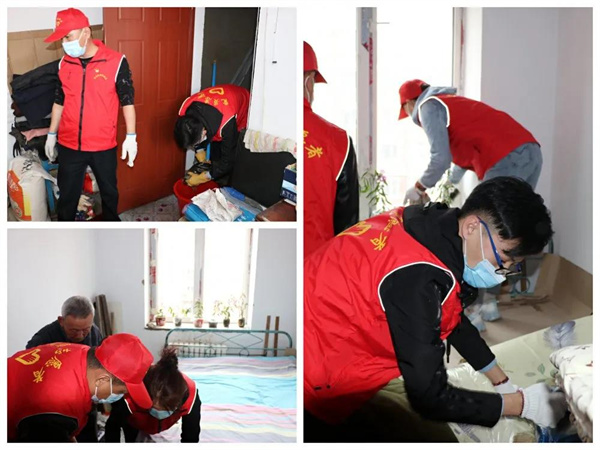 市監局機關支部經過與林緣社區黨總支溝通之後,組織黨員幹部看望、慰問貧困戶田生德老人。老人獨居,子女都在外地,無固定收入又體弱多病,家裏非常困難。黨員幹部們為其送去米、面、油、床單、被罩等生活用品,一起動手幫老人打掃房間衛生、歸置房間物品。老人很感動,說這麼多年來自已的家從沒這麼亮堂過,一再向黨員幹部們表示感謝。