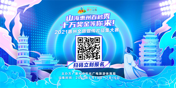 本次大賽設置10萬元獎金,面向全網短視頻拍攝製作愛好者,邀請參賽者用100秒時間,針對「旅遊風光、美麗鄉村、美食小吃、手信文化、歷史人文」等主題開創獨特視角,聚焦惠州文旅最美瞬間。徵集時間持續至2021年7月10日,期間,參賽者製作原創視頻後,可在微博、抖音、視頻號等任一平台添加#山海惠州百秒秀 話題,並發送作品至指定郵箱nanfangyige2020@163.com即可參賽。