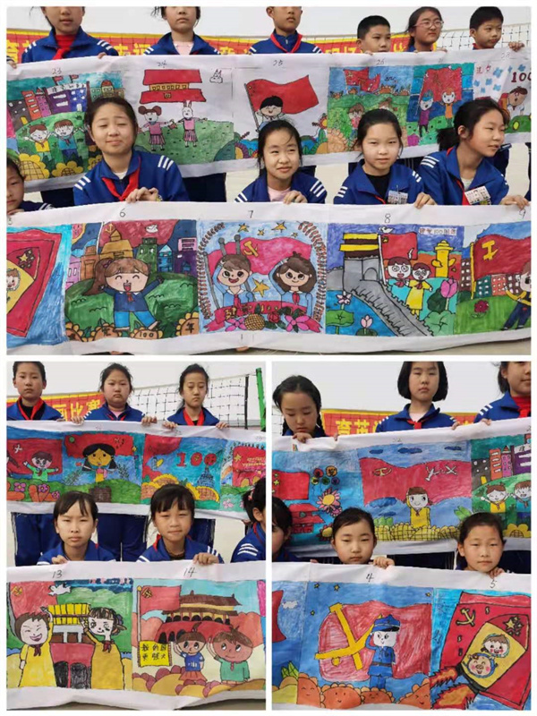 通過現場繪畫,激發了學生們學習黨史的興趣,既展示了他們豐富的想像力,也增強了他們對「四史」學習的熱情。孩子們通過手中的畫筆創作了一幅幅色彩鮮艷、想像豐富、天真活潑的繪畫作品。畫筆在孩子們的手中自由描繪,每一幅作品都凝聚着孩子的智慧與努力,激發了孩子們愛黨愛國愛社會主義的濃厚情懷。