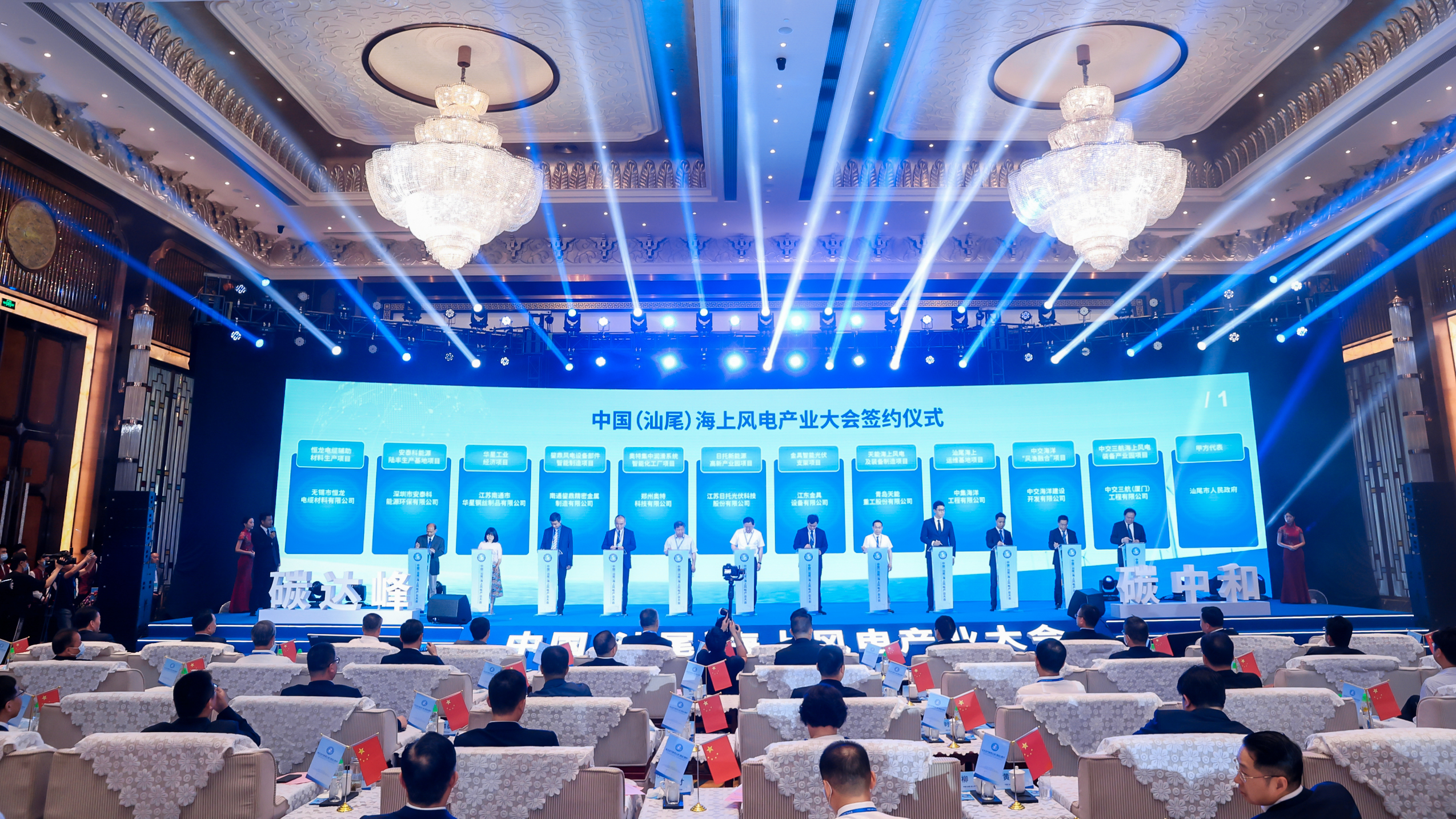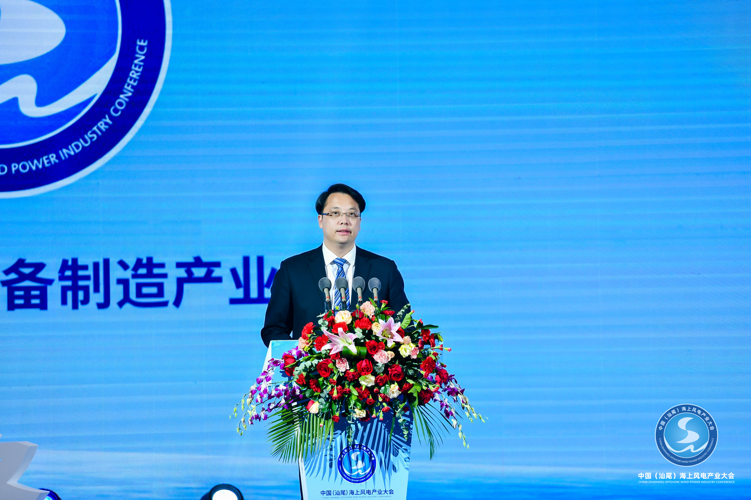 5月19日,以「發展風電裝備製造產業,實現碳達峰碳中和目標」為主題的中國(汕尾)海上風電產業大會在廣東省汕尾市召開,百餘家風電產業鏈上下游企業代表和專家齊聚一堂,共商產業發展大計,共話產業美好未來。汕尾市委書記、市人大常委會主任張曉強,中國長江三峽集團有限公司黨組書記、董事長雷鳴山,中國工程院院士侯保榮出席大會並分別致辭。汕尾市委常委、常務副市長林少文主持開幕式,市委常委、副市長葉健德介紹汕尾海上風電裝備產業基地相關情況。