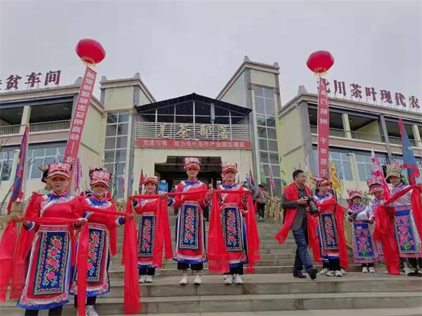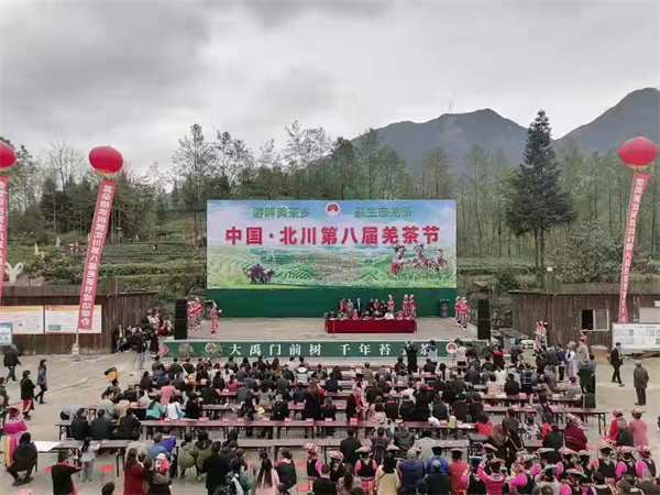 「奮鬥百年路,起航新征程」,5月20日,新聞媒體主題採訪活動走進四川省北川羌族自治縣擂鼓鎮蓋頭村「羌茶部落」。茶葉為該村支柱性產業,種植面積達到1050餘畝,有全省著名的古羌生態茶園,2016年、2017年連續兩年作為北川羌茶節會場,2018年、2021成功舉辦北川古羌茶文化節。