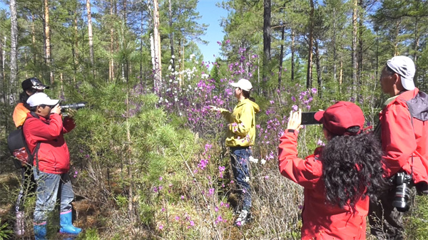 對呼瑪縣鷗浦杜鵑花海嚮往已久的遊客鄭鈺威說,「之前一直在電視和網絡中了解到興安杜鵑的美,今日凌晨驅車前來,就是想看一下日出下的興安杜鵑,當我置身在興安杜鵑的花海中,我才發現它遠比電視和網絡上來得更美,更震撼,我希望通過我的分享,讓更多的人了解這裏,關注這裏,走進這裏。」