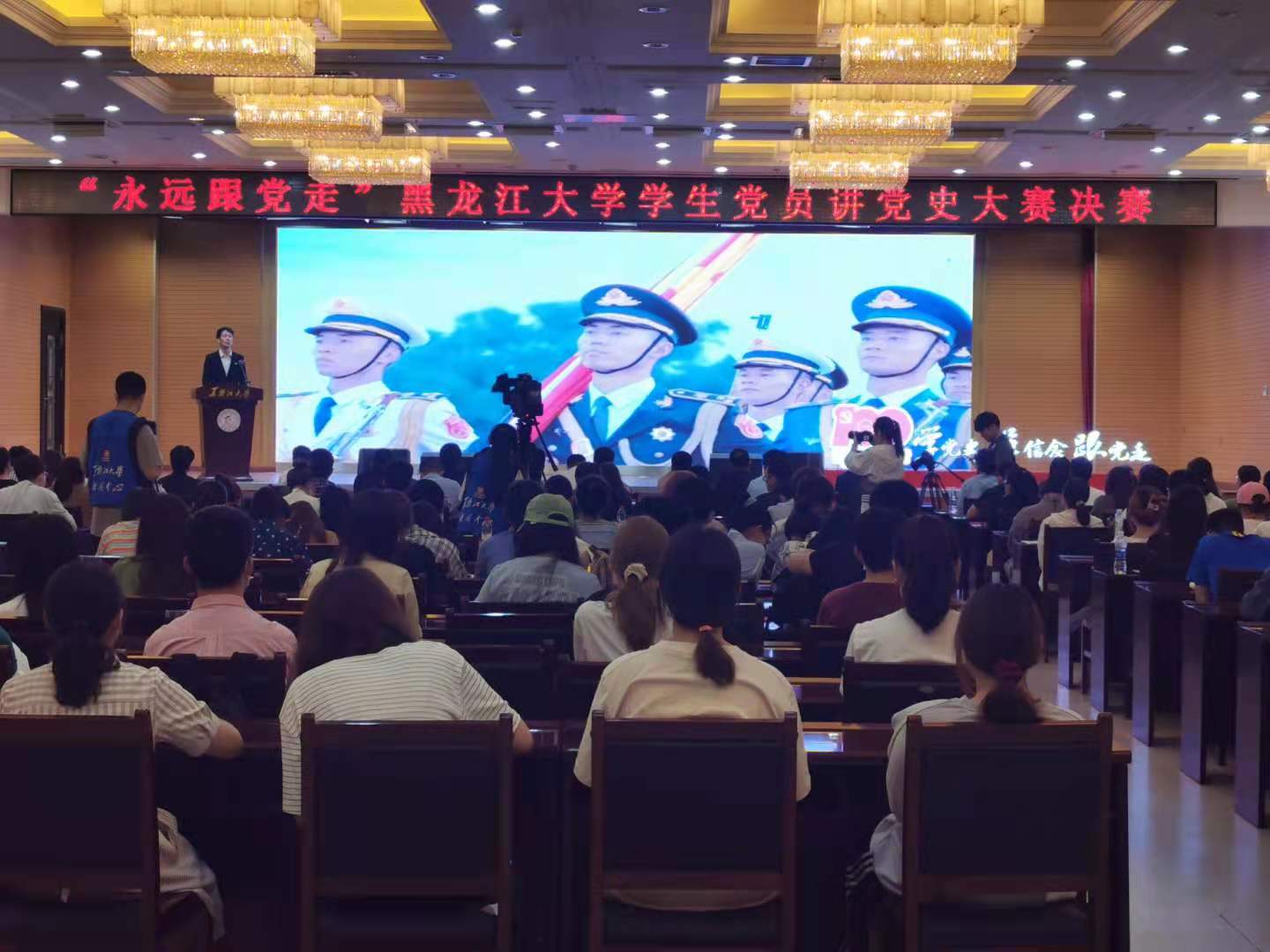 5月21日,「永遠跟黨走」黑龍江大學學生黨員講黨史大賽決賽在學校主樓一樓報告廳舉行。校黨委副書記蔣晶潔、丁宏出席活動,校黨委組織部部長黃強、學生工作部部長劉鳳影、校團委書記周成剛、黨委宣傳部副部長謝德寶、馬克思主義學院副院長王秋擔任比賽評委。各學院主管學生工作領導、輔導員代表、學生代表到場觀看比賽。