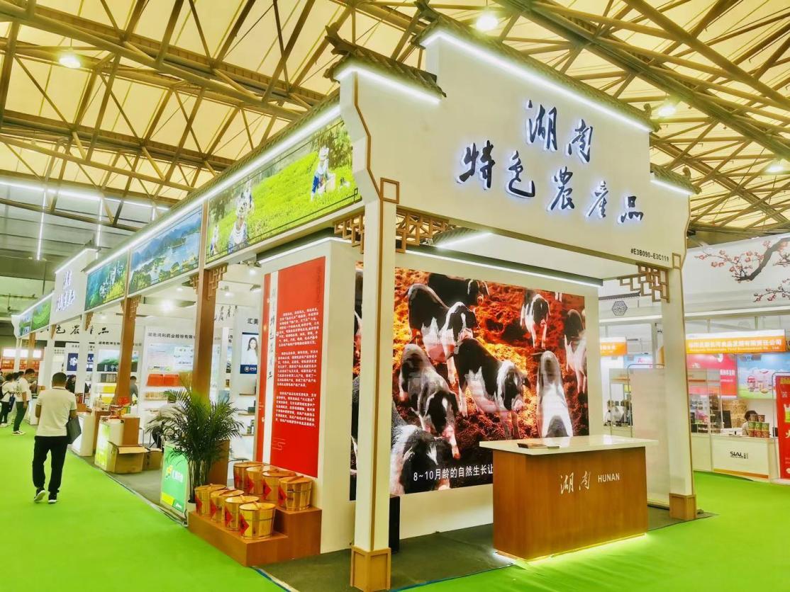 本次展會湖南緊扣農業農村部對外經濟合作中心設置的「發展綠色農業、助力鄉村振興」主題,盛裝打造湖南特色農產品綜合展區,重點組織了安化黑茶、張家界霉茶、龍山百合系列產品和流沙河花豬、果秀食品、瑤珍大米、吻野黑花生、絲絲湘紅薯粉、鴻利金銀花等數十種特色農副產品現場展示推介,展示展出面積達186平方米。