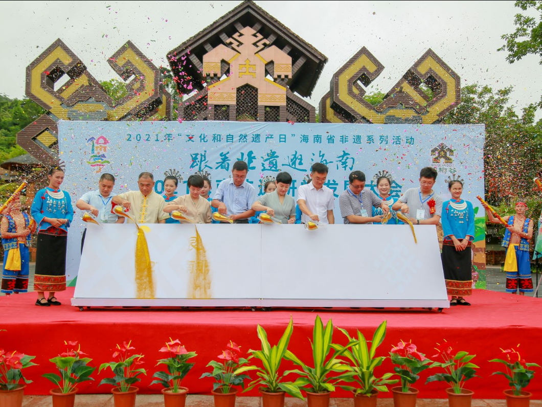 5月25日,“跟著非遺逛海南——2021海南非遺研學發展大會”系列活動在海南檳榔穀黎苗文化旅遊景區啟動,併發布非遺研學旅行創意設計大賽,向社會徵集線路設計、課程設計及創意產品設計優秀案例。