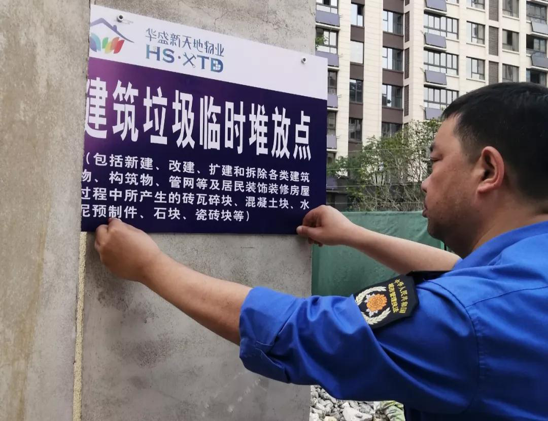 5月23日下午,我們在城區崗嶺路新華御府居民小區看到,新設置的建築垃圾分揀收運點位於小區一空閑地,面積約80平方米,三邊用磚塊壘砌分割成面積不等的三個區域,分別是臨時可利用垃圾堆放點(磚瓦碎塊、混凝土塊、瓷磚塊等)、臨時大件垃圾堆放點(廢舊門窗、傢具等)、臨時其他垃圾堆放點(包裝物等),並用藍底白字標牌張貼在醒目位置。在臨時可利用垃圾堆放點,堆放的都是碎磚、水泥塊等,而臨時其他垃圾堆放點,則堆滿了廢棄塑料袋、薄膜等;一輛鏟車正在可利用垃圾堆放點,將碎磚、水泥塊等可利用垃圾裝運到垃圾運輸車上。巢湖市城管局行政執法二大隊大隊長李善景告訴我們,小區居民裝潢時產生的建築垃圾,必須在物業公司工作人員指導下自行按照要求先行分類,然後根據分類再傾倒相應臨時堆放點;物業公司則按照「日產日清」要求,安排有資質的垃圾清運車及時將分類垃圾分別清運到指定的建築垃圾消納場處置。