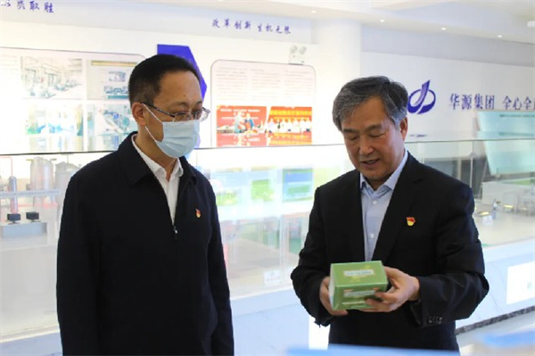 在新疆華源集團黨委書記、董事長,銀朵蘭葯業董事長李俊和集團黨委委員的陪同下,工信廳黨組書記李剛一行參觀了「李俊勞模和工匠人才創新工作室」,着重了解了民族葯創新發展和產業園建設情況、華源熱力節能減排和智慧供熱系統以及綠色建築成套技術的應用等。