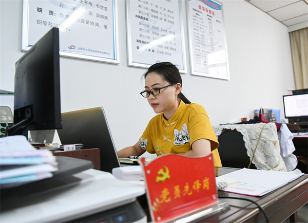 正值周末,姚懿莉仍在辦公桌前忙碌着,她的面前擺放着兩台電腦,正在處理免疫規劃和預防接種信息管理系統上的各類信息。桌旁掛着的一包不起眼的中藥引起了記者的注意。