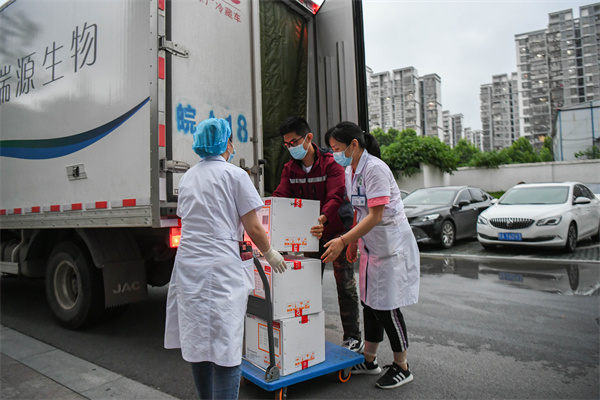 5月21日晚上10點半,又一批新冠病毒疫苗從包河區疾控中心配送到同安街道社區衛生服務中心。當天下午,包河區疾控中心免疫規劃科副科長趙瑞君和同事們開着疫苗冷鏈運輸車從市疾控中心領取到疫苗後,第一時間配送到全區各個接種點,配送完成後,已是深夜。