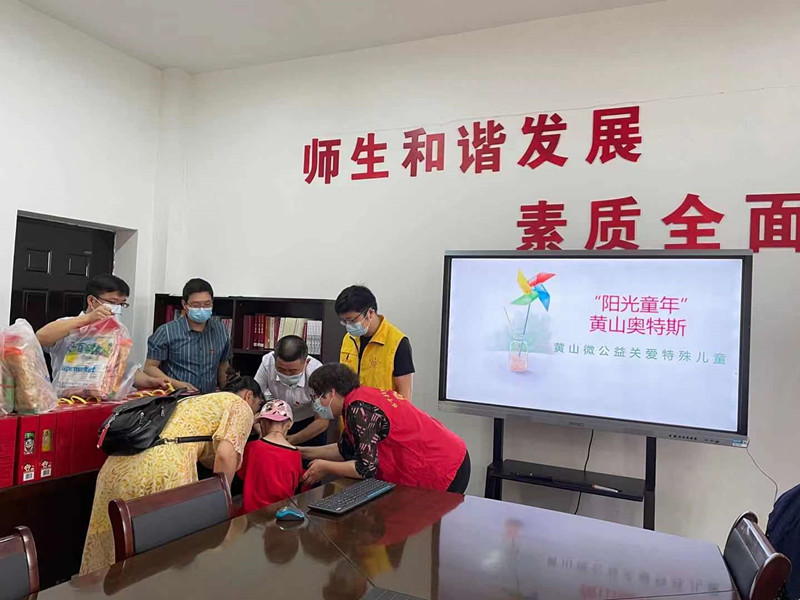 5月27日,安徽黃山市休寧縣殘聯“陽光童年”志願服務隊聯合黃山奧特斯電氣股份有限公司、黃山微公益志願者協會來到黃山市特殊教育學校,走訪慰問了正在學習康復的33名殘疾兒童和家長,送去了“六一”慰問品和節日的祝福,促進殘疾兒童健康快樂成長。