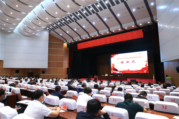 在結業式上,黑龍江省政府副秘書長韓庫全面總結了本次研討班的學習成果,給予了研討班高度肯定和積極評價,要求全體學員持續提高政治領悟力,在認識鄉村振興戰略重要意義上再強化;持續提高政治判斷力,在承擔鄉村振興戰略工作責任上再擔當;持續提高政治執行力,在狠抓鄉村振興戰略目標任務上再作為,切實把所思所學轉化為推進鄉村振興的工作成果。