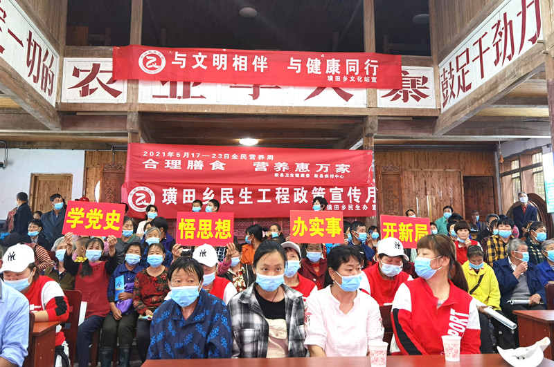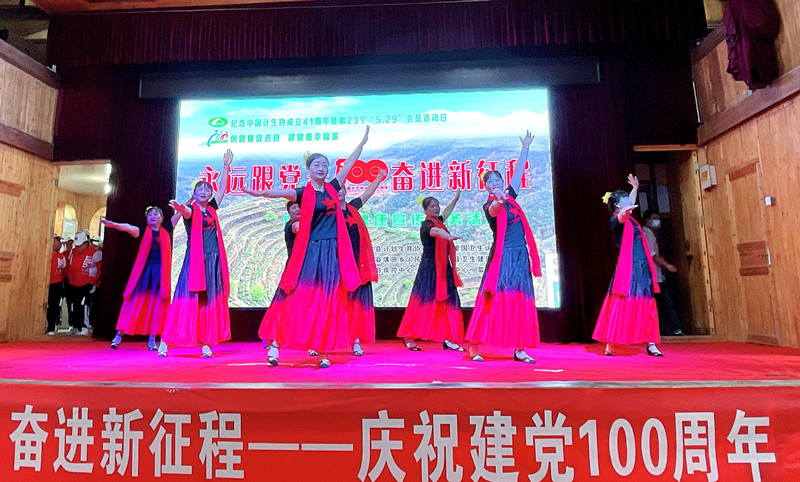 5月26日,安徽黃山市歙縣計生協、愛衛會聯合璜田鄉黨委政府在蜈蚣嶺村舉辦“永遠跟黨走·奮進新征程—慶祝建黨100周年”活動,高唱《我和我的祖國》,弘揚蜈蚣嶺精神,奮進新時代。