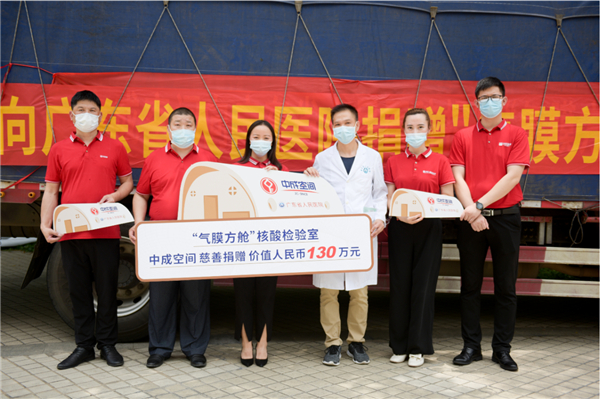 自新冠病毒疫情爆發以來,中成空間積極調撥社會力量籌集資源,多次向抗疫一線捐贈醫療物資。今年1月,更是組建研發團隊研製「氣膜方艙」,斥資打造「100個氣膜方艙捐贈公益項目」,投入科技力量深度參與全民抗疫行動,和一線醫療單位共同抗疫。此次由中成空間向廣東省人民醫院捐贈的「氣膜方艙」共有5座,是中成空間向抗疫一線醫療單位捐贈的首批「氣膜方艙」,價值共計人民幣130萬元人民幣。(記者 黃鳳鳴)