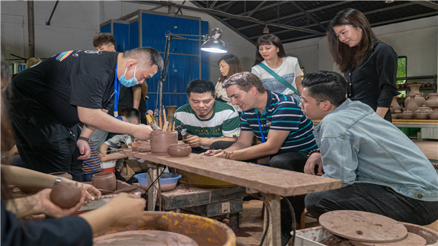 如今,以夏布、折扇、陶三大非遺為基礎,榮昌已形成從作品創作、產品研發到研學、市場銷售的完整非遺產業鏈。同時,在非遺「活」起來的基礎上,榮昌推非遺「火」起來,以系列活動、大講堂等方式,實現非遺產品的品牌化、規模化和市場化。