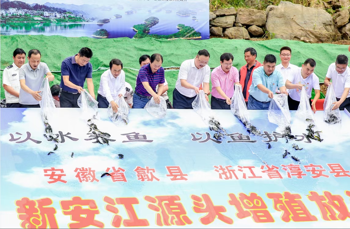 “六五”環境日暨全國放魚日到來之際,安徽歙縣和浙江淳安縣在新安江水域聯合開展增殖放流活動,5萬尾優質成魚和魚苗安家新安江。據瞭解,這是歙縣連續第18年向新安江流域投放魚苗,在改善新安江流域水生物結構和多樣性的同時,也進一步喚起全民自覺保護新安江、保護生態環境的意識。