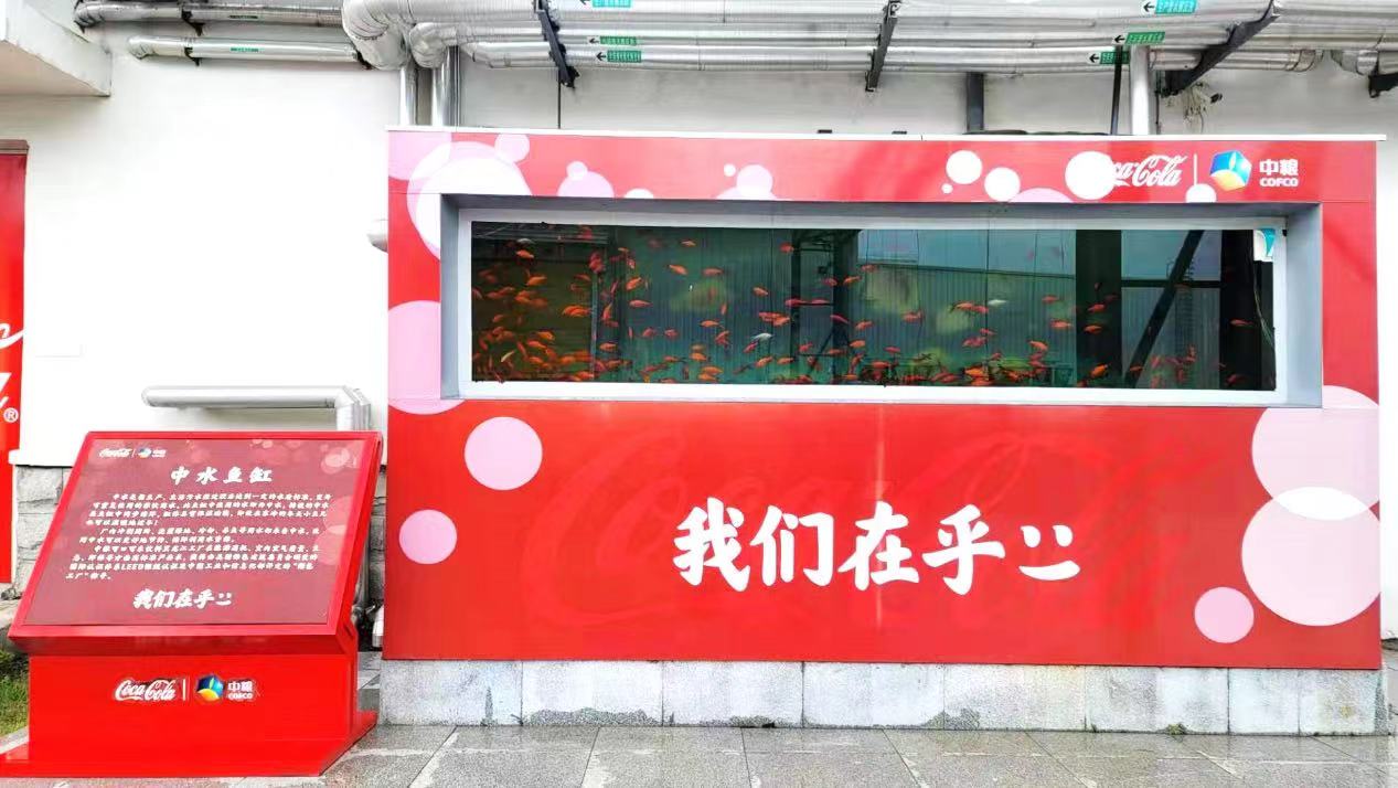 50名高校學生一同參與了視頻大賽的啟動,並於活動現場通過鏡頭拍攝過程中的精彩瞬間。一個超大的魚缸吸引了同學們的注意,這就是中水魚缸。中水是指生產、生活污水經處理後達到一定的水質標準,變為可重複使用的非飲用水。這個魚缸中使用的水即為中水,排放的中水在魚缸中同步循環,缸體具有保溫功能,即使在寒冷的冬天小魚兒也可以溫暖過冬。據悉,中糧可口可樂黑龍江在生產工藝和污水處理方面施行了多種方式優化用能結構,在保證安全、質量的前提下儘可能減少能源投入。