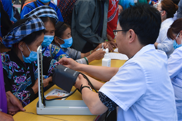 5日 ,貴州中醫藥大學組織30餘人的黨外人士醫療隊赴黔西南州冊亨縣,開展「學習黨史辦實事,義診服務踐初心」主題義診活動,免費給當地民眾看病、檢查、開藥,將優質醫療資源下沉到基層,把健康送到百姓家門口。