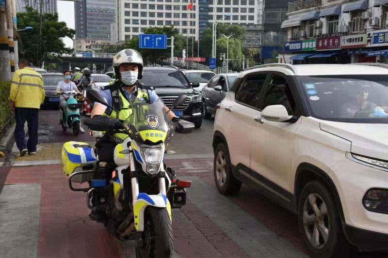 6月7日上午,交警蜀山大隊組織警力,全力保障高考考點周邊交通秩序(蜀山區委宣傳部供圖)