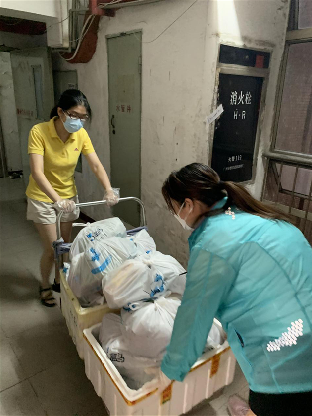 滘口中心站值班站長陳茵敏是一名有12年黨齡的老黨員,在地鐵一線工作已有24個年頭,地鐵的服務工作培養了她的愛心與耐心,同事們都親切地稱呼她為「陳家姐」。5月30日,陳茵敏所在的小區開始封閉管理,家裏原本就有2名身體抱恙的高齡老人要照顧,但陳茵敏克服困難,依然第一時間主動加入荔灣區白鶴洞街道社區的志願服務小隊,擔任自己所在住宅樓的志願者,憑藉常年在車站的工作經驗,陳茵敏頂住了重重壓力,一邊照顧好自家老人,為老人購買物資、藥品,一邊擔任社區志願者,協助居民口罩、手套等防疫物資的派送。
