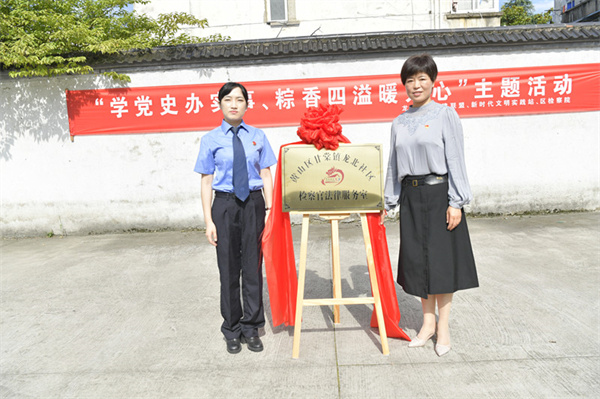 宣講前,區檢察院辦公室主任方琦和龍北社區第一書記胡翠萍共同為龍北社區檢察官法律服務室舉行了揭牌儀式。