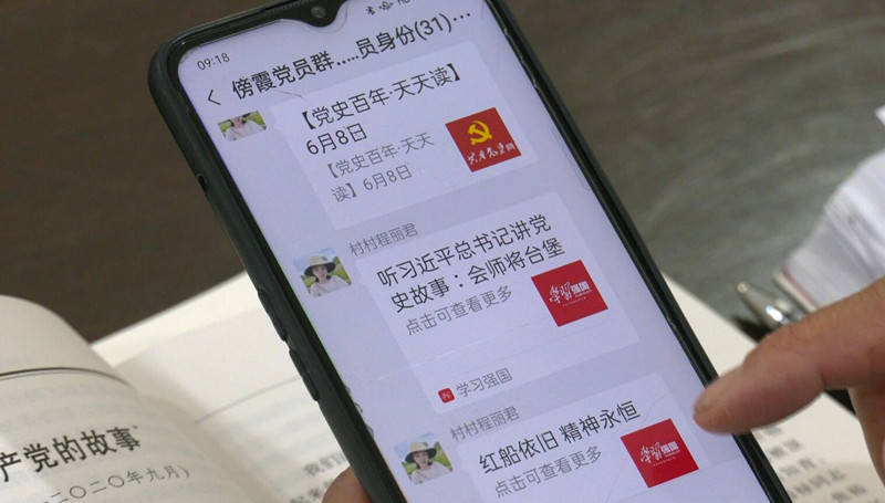 今年4月以來,黎陽鎮傍霞村開創了一種全新的模式——“微信學”,把學黨史搬到微信群。每天村幹部在集中學習的同時,也會在村黨員聯絡群裏轉發各類紅色黨課、黨史微課、紅色故事等網上黨史學習教育內容,讓黨員們不論在田間地頭還是千裏之外,都能在休息間隙隨時隨地來上一堂“迷你”的黨史課。