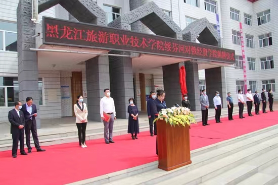 6月10,黑龍江省旅遊職業技術學院綏芬河對俄經貿學院舉行成立揭牌儀式。黑龍江省商務廳、黑龍江省旅遊職業技術學院、綏芬河市政府等有關領導參加此次活動。儀式上,綏芬河市人民政府副市長宋雪花和黑龍江旅遊職業技術學院副院長王莉先後致辭。黑龍江省商務廳一級巡視員趙武君為綏芬河對俄經貿學院院長張基興和執行副院長劉宏勛頒發了聘書。