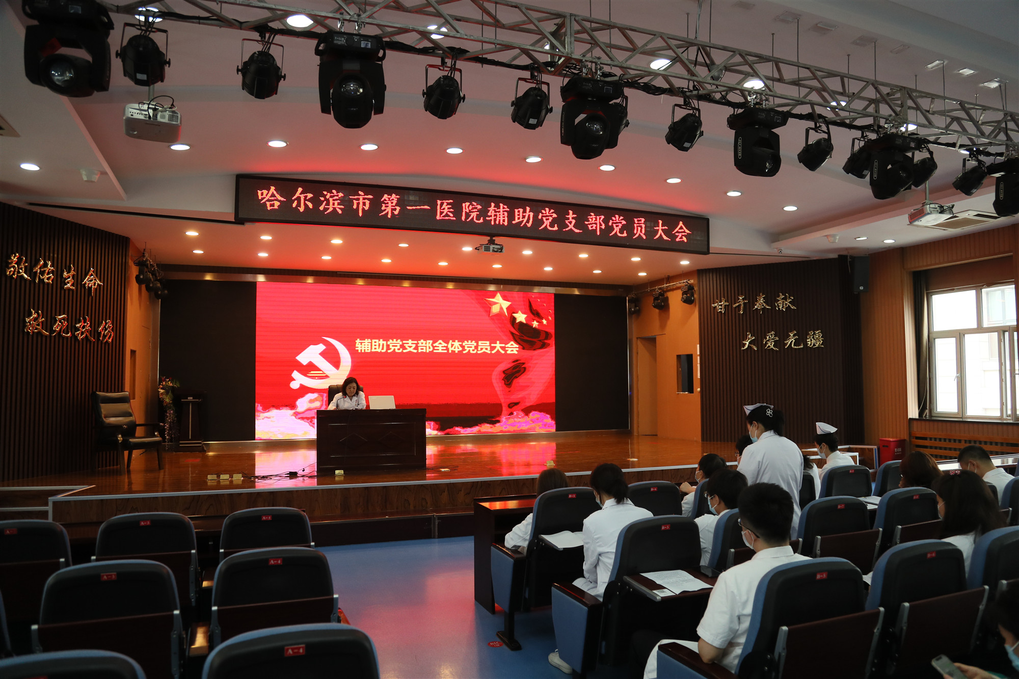 6月10日,哈爾濱市第一醫院輔助黨支部召開黨員大會80餘名黨員、積極分子參加。會上,武金玉副院長為全體黨員講述了中國共產黨黨史。
