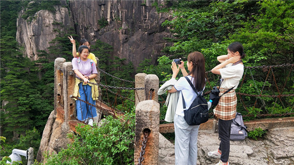 西安遊客李鳳琦一行4人端午假期專門來黃山,看到雄偉險峻的黃山後,他們紛紛表示黃山不愧是“天下第一山”,雲蒸霧繞,仙氣迷人,非常開心!(記者 吳敏 通訊員 葛旭芳 詹熙)
