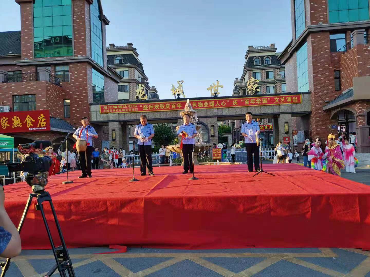 六月的鮮花競相綻放,六月的天空百鳥飛翔;六月的大地充滿生機,六月的祖國歌聲蕩漾。在中國共產黨成立100周年到來之際,6月11日晚上18時,黑龍江省龍江縣龍江鎮通達社區、龍城世家紅色物業黨支部,在龍城世家門前廣場,聯合舉辦了《盛世歡歌慶百年,紅色物業暖人心》,慶「百年華誕」專場文藝演出。縣直有關部門領導、社區幹部與龍城世家業主及500多名社區群眾一起觀看了演出。