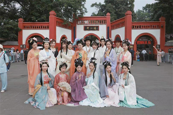 「國風達人邀您尋找青城山—都江堰景區最美打卡點」系列活動,則受到了年輕人熱捧,很多年輕人身着漢服來打卡,偶遇的「漢服達人」,對上暗號還能獲得文創雪糕。還在讀大三的蘇小姐說,「我穿漢服不只是因為漢服很美,它還給了我一種對我們民族傳統文化的認同感和自豪感,來青城山、都江堰穿漢服的感覺太棒了,人、衣、景融為一體,就像穿越了一樣!」
