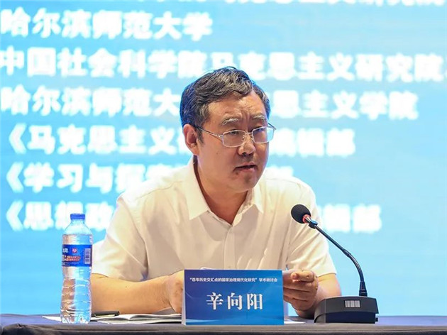 辛向陽代表中國社會科學院馬克思主義研究院對會議的勝利召開表示祝賀。在發言中,他指出中國特色社會主義國家治理現代化新路不是從天上掉下來的,也不是一朝一夕形成的,而是中國社會新陳代謝的歷史邏輯與實踐邏輯的產物。召開本次會議,一要推動關於「怎樣治理社會主義社會」這個重大課題的深入研究,二要推動新時代黨治國理政顯著特徵和新鮮經驗的深入研究,三要推動中國共產黨治國理政比較優勢的深入研究,為新時代堅持和完善中國特色社會主義制度、推進國家治理體系和治理能力現代化提供智力支持。