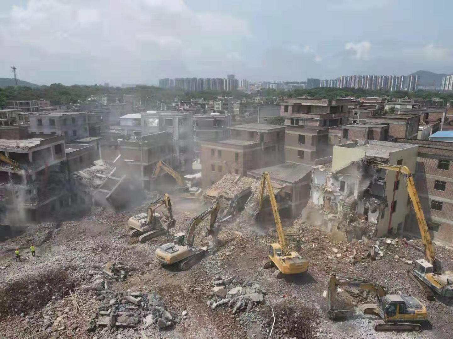 6月16日,中新廣州知識城「兩街一鎮」範圍內共1000棟房屋啟動集中拆除,面積合計27.23萬平方米,這是知識城今年第三次組織集中拆除房屋行動。