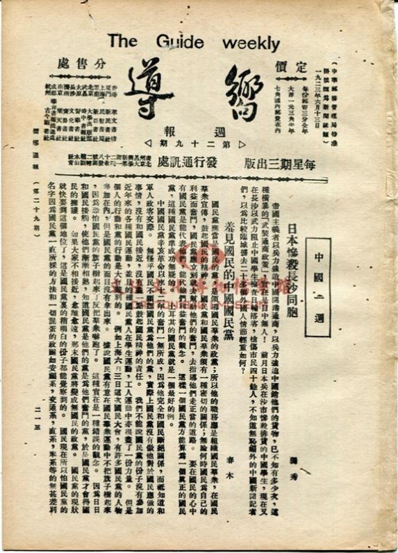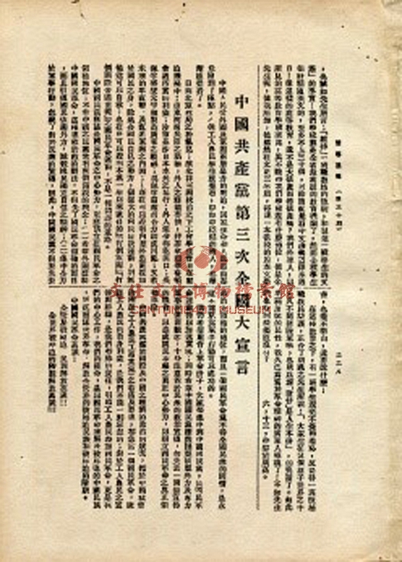 1923年6月20日《嚮導》周報第三十期,刊登有《中國共產黨第三次全國代表大會宣言》(文仕文化博物檔案館藏)