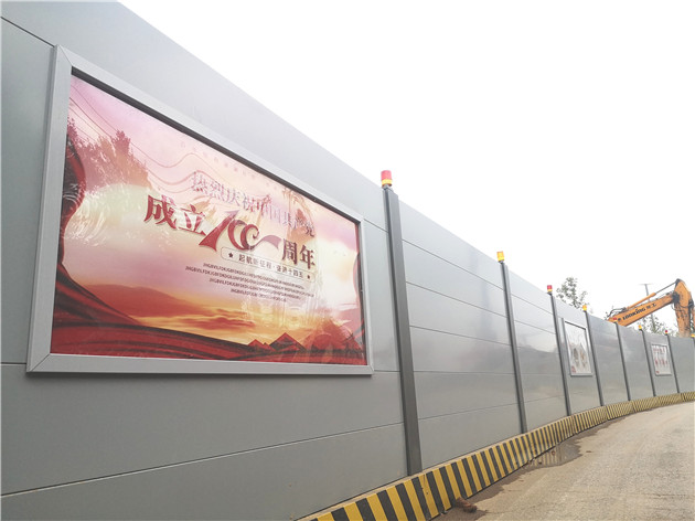 其中在巡撫西路處的大王山旅遊基礎設施項目膠輪有軌電車建設現場附近,建設單位比亞迪建設工程有限公司在公路沿線安裝的鋁質新型裝配式圍擋非常漂亮。圍擋中央嵌入式的慶祝建黨100周年社會公益宣傳欄,讓過往的司乘人員耳目一新,為市民帶來賞心悅目的感官享受,也成為展示網紅長沙城市形象的新窗口。據現場相關人員介紹,該處鋁質新型裝配式圍擋將長達8000米左右,會成為長沙市一道亮麗的風景線。