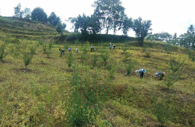 6月18日,在安徽黟縣西遞鎮葉村的青梅基地裏,村民們正忙著種植青豆,挖坑、播種、覆土……呈現出一派忙碌景象。