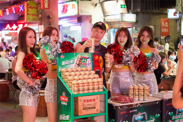 晚上九點一過,紅色菜單撤下,藍色系的「宵夜菜單」換上,包含三款歐洲杯宵夜套餐。選擇宵夜套餐的消費者,可以享受青島啤酒無限暢飲。在中庭區,打扮靚麗的青島啤酒足球寶貝手持足球元素手舉牌、合影框,消費者可以進行遊戲互動併合影。除了搖骰子比大小等互動遊戲之餘,晚間零點足球寶貝還會在現場抽取大獎,最高價值888元的無門檻代金券就看花落誰家了。