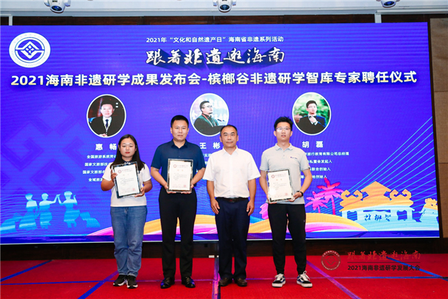 6月22日,“跟著非遺逛海南——2021海南非遺研學發展大會”非遺研學成果發佈會暨簽約儀式在海口舉行,對79件入選創意設計大賽的作品進行頒獎。此次活動由海南省旅遊和文化廣電體育廳、海南省教育廳、保亭黎族苗族自治縣人民政府聯合主辦,保亭黎族苗族自治縣旅遊和文化廣電體育局、保亭黎族苗族自治縣民族事務局、海南檳榔穀黎苗文化旅遊發展有限公司共同承辦。