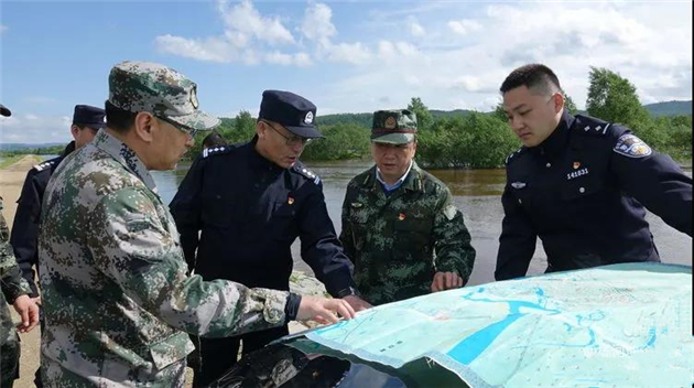 大興安嶺林業集團公司黨委書記于輝與塔河縣局領導利用無人機查看塔河汛情