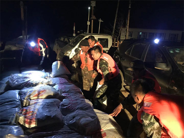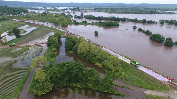 由呼瑪縣防汛抗旱指揮部組織的全縣500百餘名黨員幹部職工組成的應急搶險隊伍,在河南堤防加高築堤,用沙包築起防水壩,用一天的時間提高了呼瑪河南堤防的防汛能力。