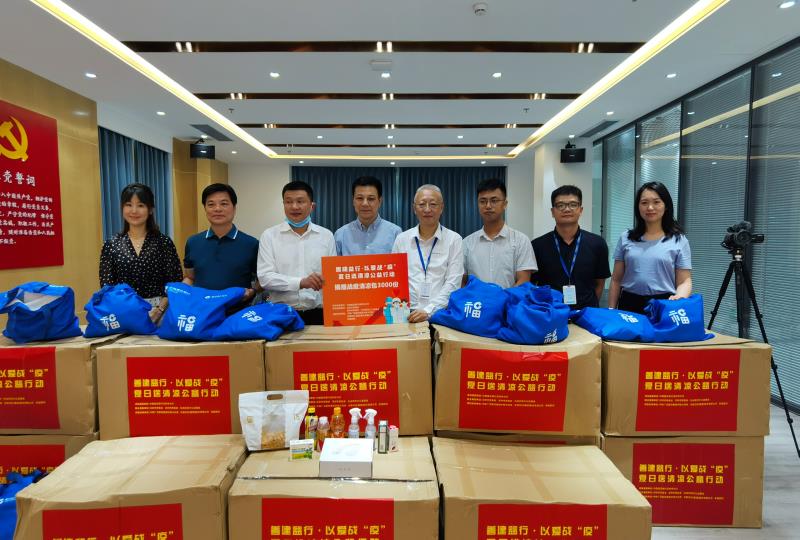 該活動為福田區抗疫一線的工作者們送去了700份降暑包。每個降暑包裏面裝有一個掛脖風扇、2支降溫噴霧,1盒霍香正氣水、1支無比滴、1支驅風油、2瓶功能性飲料、1份餅乾。