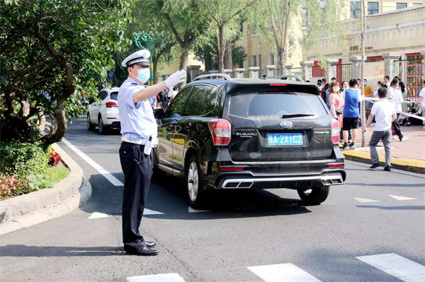 各轄區大隊綜合全市各考場周邊實際情況,實施「一校一策」管控措施,通過設置臨時停車區域、實施臨時交通管制、增加保障警力等一系列「護考」舉措,全力確保考生順利赴考。6時30分,交警道里大隊執勤警力對轄區各考點周邊開展保障工作,一中門前,交警在指揮送考車輛有序停車的同時,還對石頭道街、森林街沿線的大型車輛實時進行分流,保障兆麟街沿線安全、順暢通行。此外,針對中考送考人數較多,校園門前人流較為密集的情況,沿線警力在中午、下午考試結束時段,對石頭道街、兆麟街等沿線道路實施臨時交通管制,禁止車輛駛入,保障考生及家長的安全、高效出行。「交警一系列的精細化管理十分暖心,也讓我們的出行更加放心,為他們點讚」,家長李先生表示。