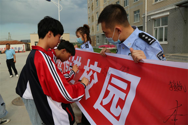 禁毒宣傳「進校園」,拜泉縣公安局禁毒大隊全體民警走進職業技術高中,對廣大師生開展以「全民參與禁毒,共建綠色拜泉縣」為主題的簽名活動。禁毒大隊民警以宣講的形式向師生講述了吸毒的危害,又通過校園涉毒案例讓學生們時刻保持警惕,防範毒品的侵入。學生代表承諾要努力學習,報效祖國,做到不吸毒、不販毒、不製毒,自覺抵禦毒品,積極檢舉涉毒行為,堅決與毒品鬥爭到底!