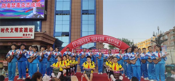 拜泉縣禁毒辦聯合縣委宣傳部、政府辦、公安局、教育局、縣婦聯等單位,舉辦了以「全民參與禁毒,共建綠色拜泉縣」為主題的文藝匯演宣傳活動。通過仿真毒品展示、文藝器樂和歌曲等群眾喜聞樂見的節目,吸引了眾多群眾駐足觀看。活動在《鼓舞中國》架子鼓表演的慷慨激昂節奏中拉開序幕,《禁毒快板表演》用清脆的竹板聲,打出了氣貫長虹的聲威,打出了依法禁毒的戰歌。LED大屏幕播放的禁毒宣教內容直抵人心,讓觀眾對毒品的危害性感同身受,對禁毒工作的重要性、緊迫性有了更為真切的認識。同時,工作人員發放禁毒宣傳手冊,為群眾講解毒品的危害及防範知識,讓群眾掌握了更多的禁毒常識。活動中共發放《全國毒品預防教育讀本》、《禁毒知識手冊》等禁毒宣傳資料3000餘份。本次文藝演出活動中還穿插了禁毒知識有獎搶答,學生和群眾踴躍參與,營造了寓娛樂性、知識性、教育性於一體的良好氛圍。演出結束後,工作人員還為現場觀眾發放文具、水杯、購物袋等禁毒禮品。